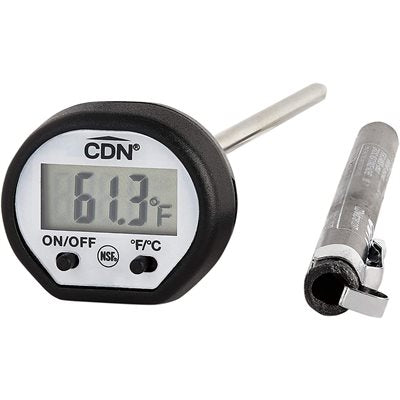 Ce thermomètre précis est idéal pour obtenir une mesure rapide et facile de la température. Il est fabriqué avec du matériel pouvant aller dans les produits alimentaires et indique les dixièmes de degré.